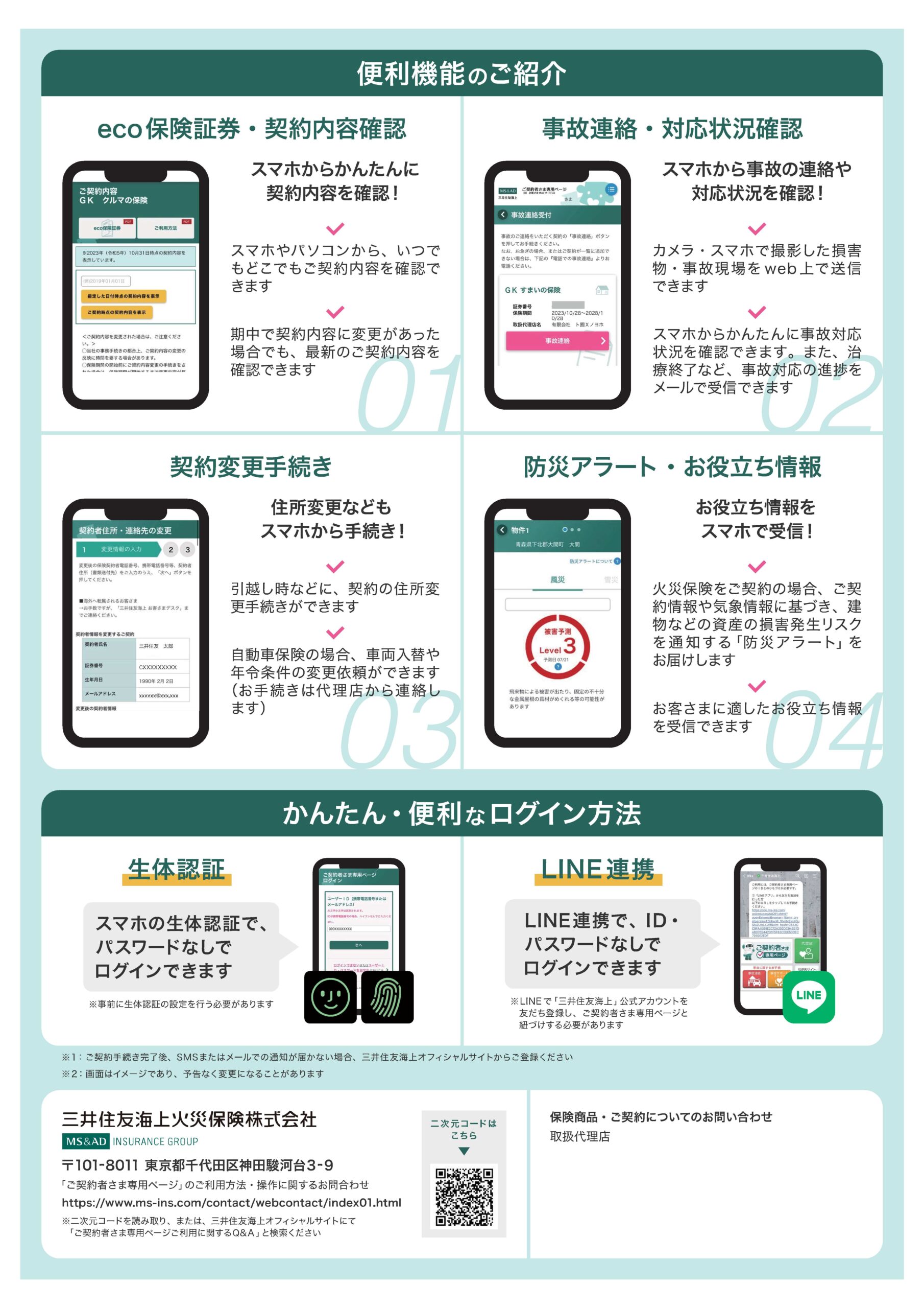ことで、お客さまご自身でご契約の内容のご確認ができたり、実際事故等が起こった際に、保険会社への連絡がスムーズにおこなうことができます。
